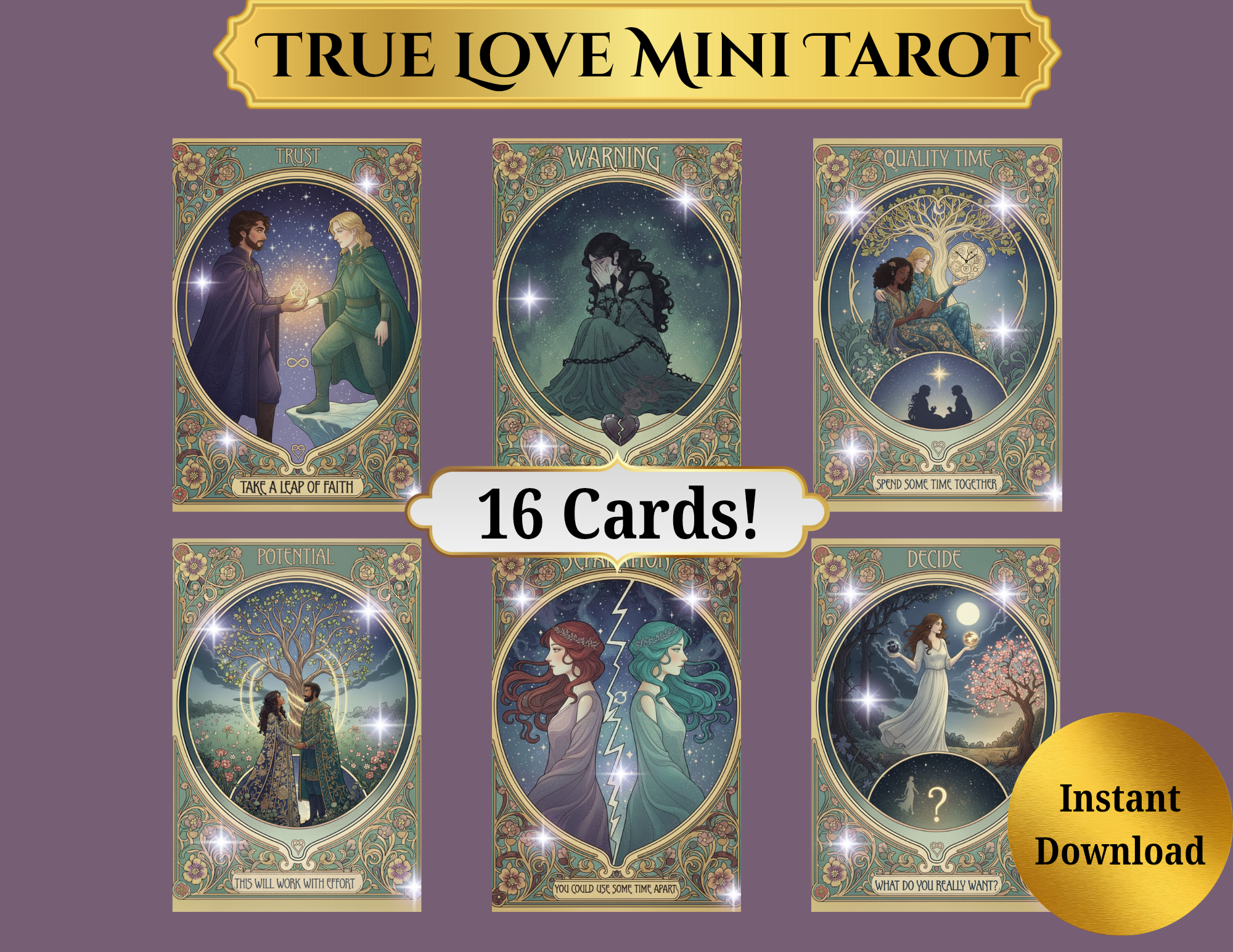 Set of 16 True Love Tarot Cards for Easy Guidance
